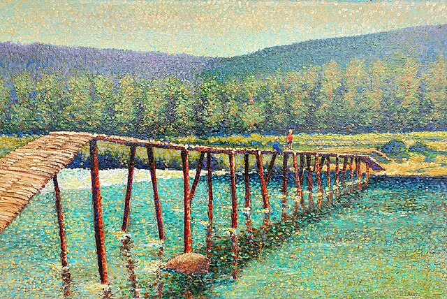 조르주 쇠라의 대표작인 그랑드 자트섬의 일요일 오후(Un dimanche après-midi à l'Île de la Grande Jatte, 1884~1886)는 점묘법이 실현된 대표적인 걸작입니다. 이 대형 캔버스는 파리 근교의 센강 주변 공원에서 여가를 즐기는 시민들의 모습을 정밀한 점묘법으로 묘사한 작품입니다.